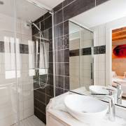 Il comporte cinq chambres (grands lits de 1.80 x 2.00m ) avec leurs cinq salles de bains et cinq WC, un très grand salon, une salle à manger avec cuisine et terrasse avec table et chaises.