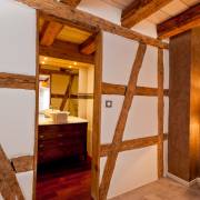La maison a été restaurée en 2015 en conservant toutes les boiseries anciennes, poutres et escaliers gardés en bois brut.